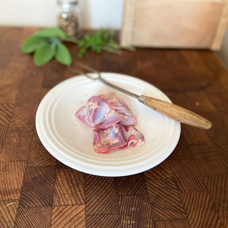 Since we don’t include giblets with our whole chickens, you can order your favorite extra chicken parts separately. Here’s a helpful article about gizzards: Spruce Eats