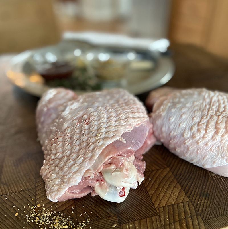 We pack our whole, bone-in, Pasture Raised Turkey Thigh with skin in a single or double pack, depending on size. These are a customer favorite!